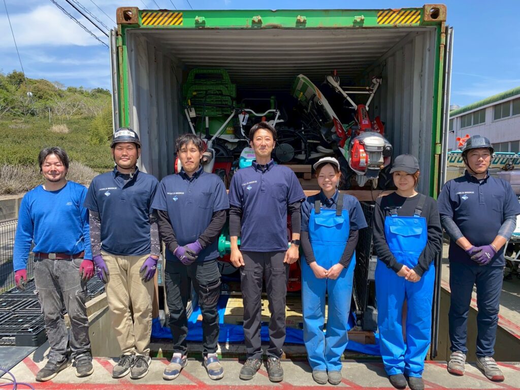 20ft又は40ftのコンテナを購入して頂きます。積み込める台数は機械のモデルや馬力によって異なりますが、20ftのコンテナであれば約5〜7台のトラクターを、40ftのコンテナであれば約15〜20台を積み込むことができます。出荷時にはトラクターのタイヤやロータリー等を取り外し、コンテナ内部には木枠を組みしっかりと商品を固定した状態で出荷を行なっております。詳細はお問い合わせください。
